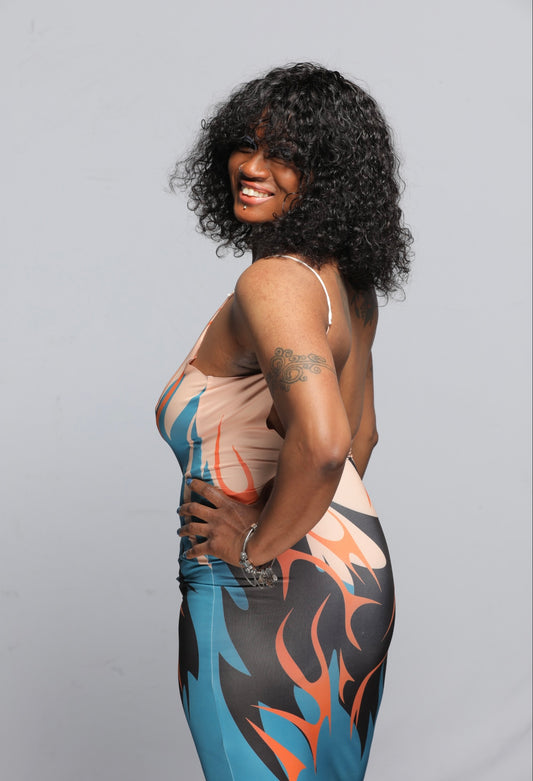 Printed Backless Sling Dress (Flames)