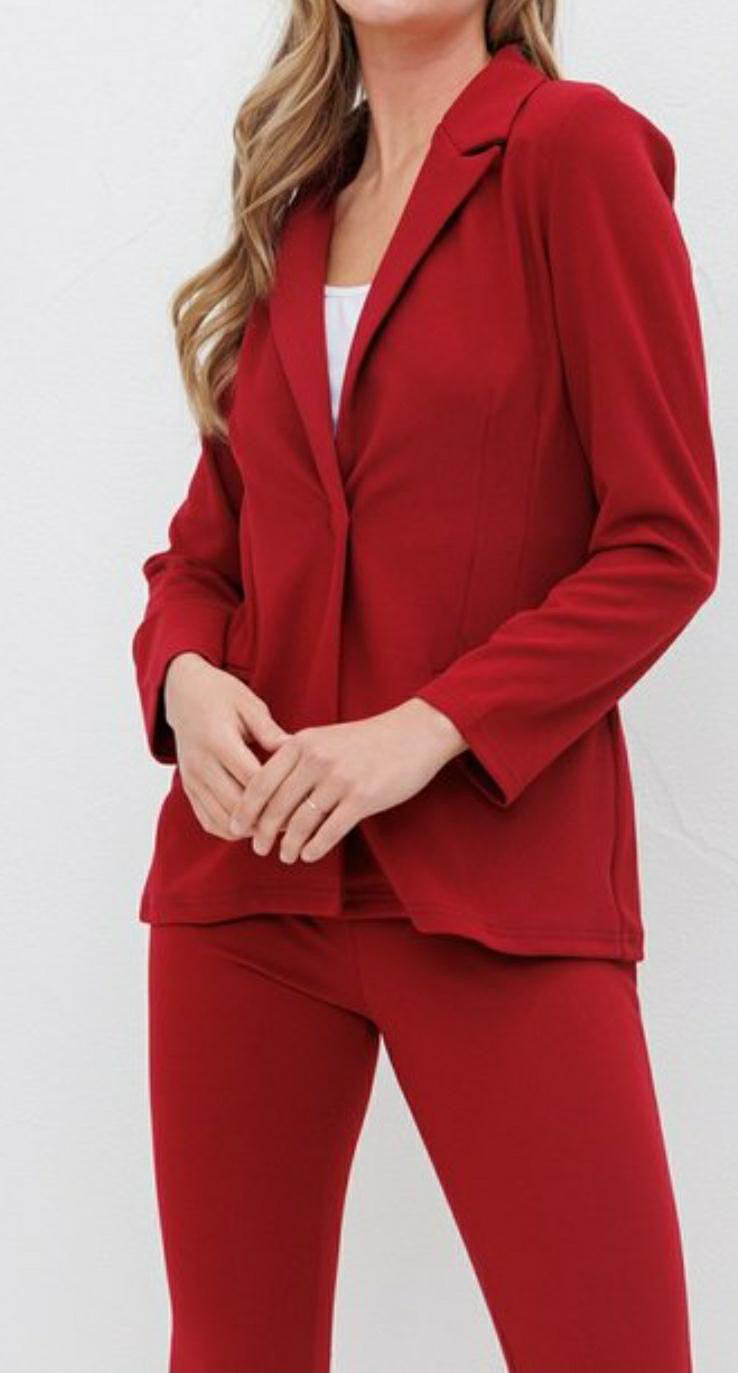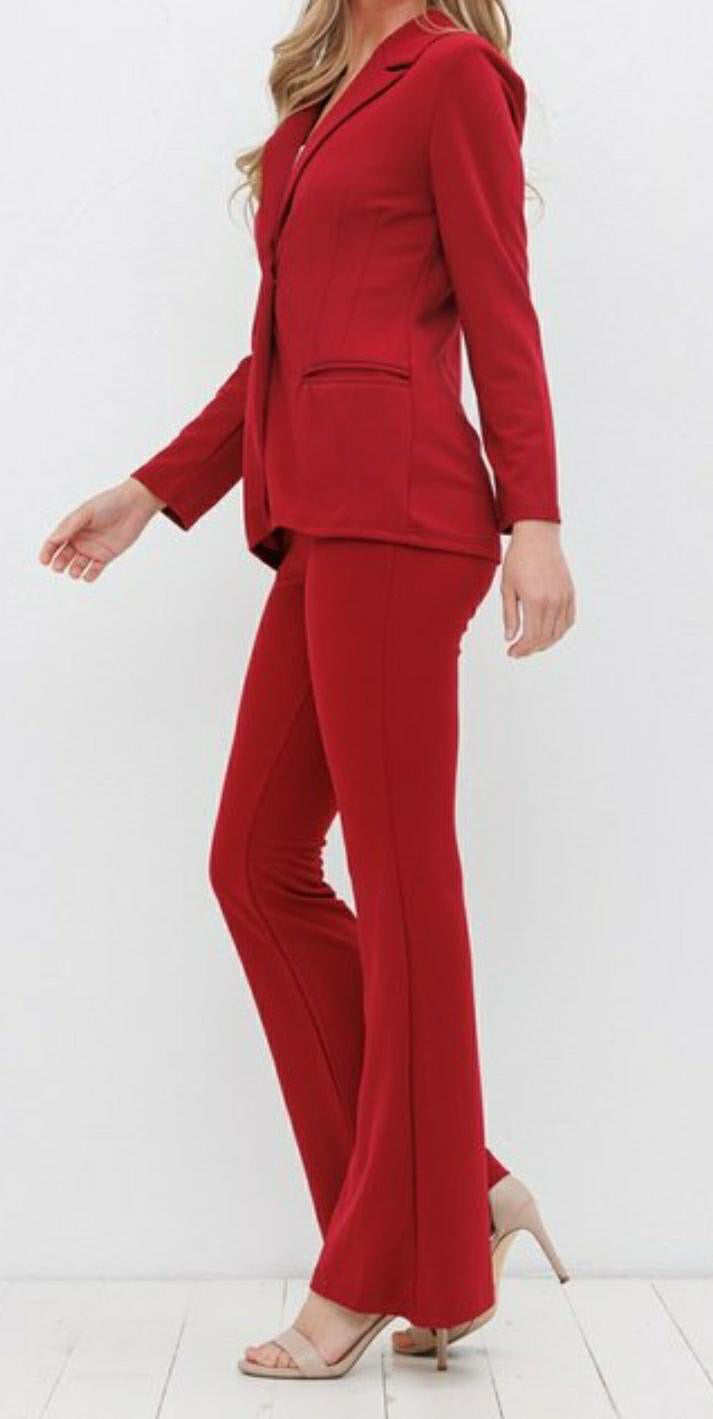 Giving Boss Babe Vibes with this pants suit!! Bring the business meeting to a stunning stop when you walk in with this single button blazer with two front pockets and boot cut fitted pants with elastic waist!